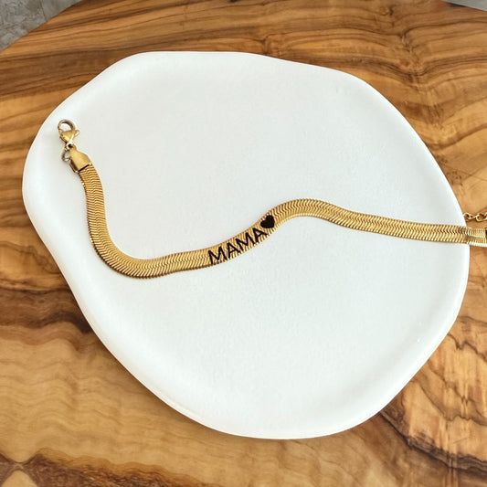 Mama Engraved Gold Stainless Steel Herringbone Bracelet – Elegant Minimalist Jewelry for Moms