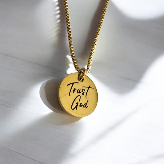 Trust God Engraved Gold Stainless Steel Necklace – Faith-Inspired Minimalist Jewelry