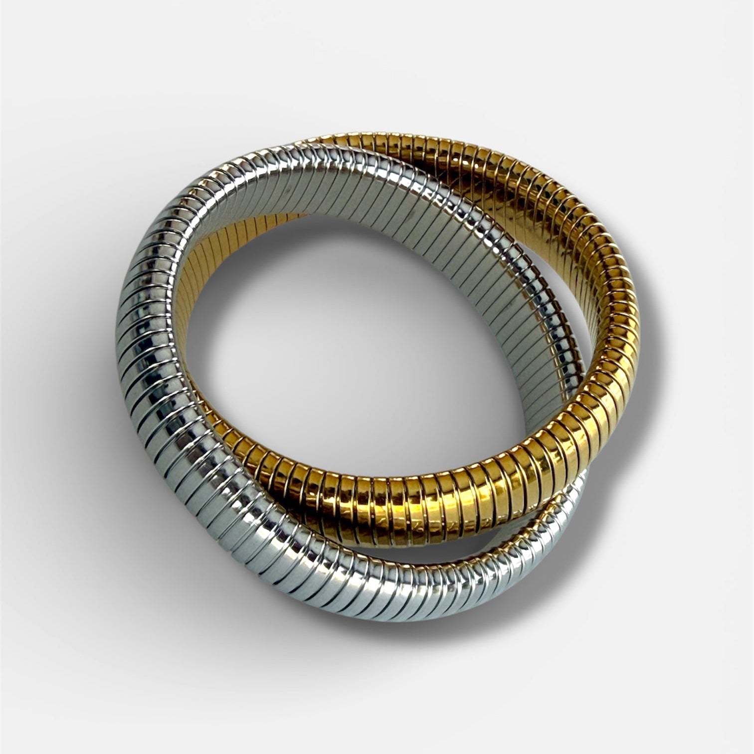 Interconnected Gold & Silver Stretch Bangle | Waterproof Stainless Steel Two-Tone Bracelet